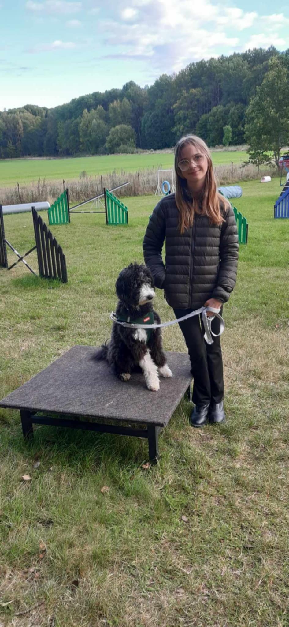 Här ovanför ser ni 2025 års agilityelev: Wendela och Lily!